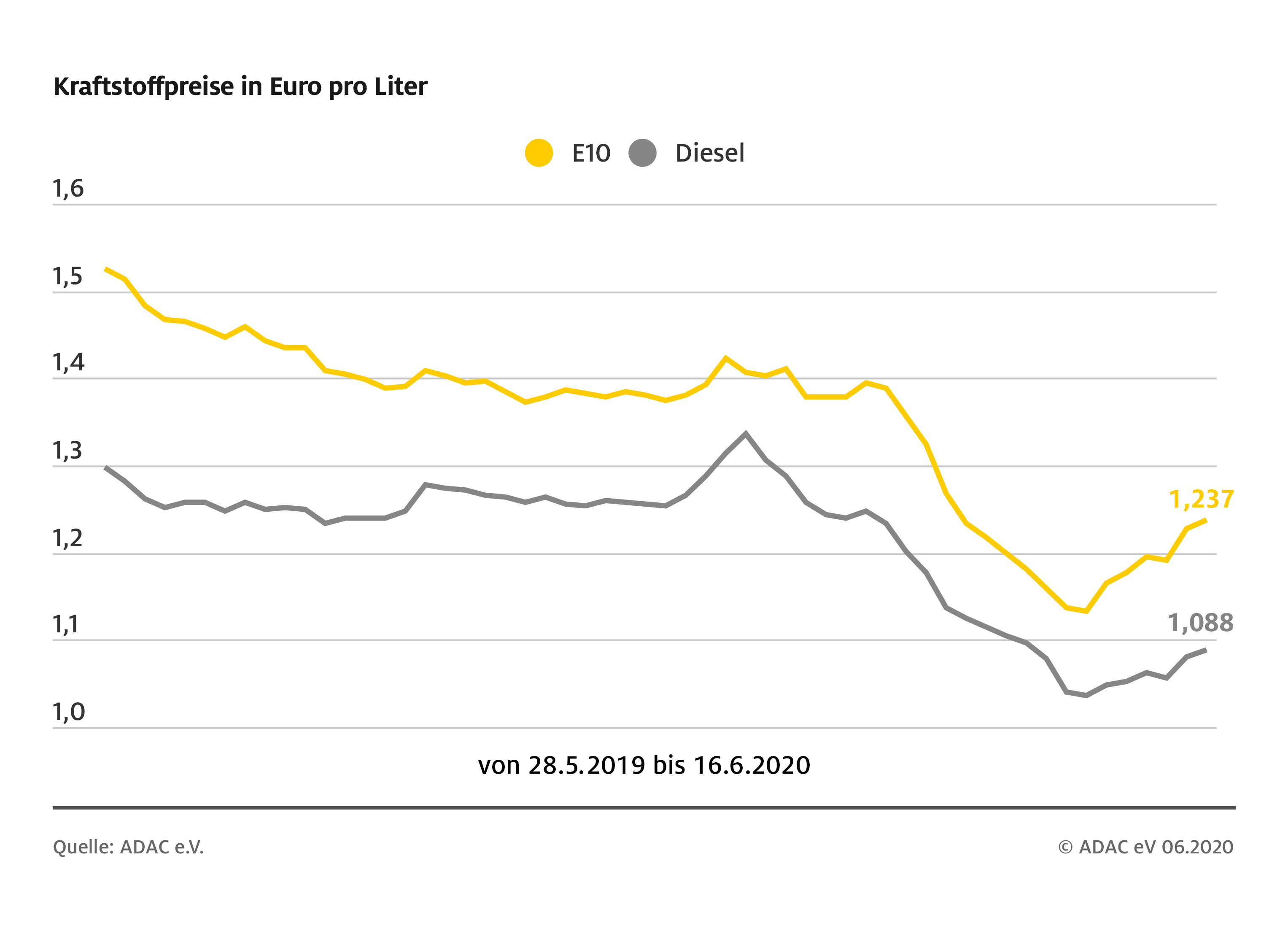 Rohölnotierungen seit April verdoppelt / Kraftstoffpreise im Bundesdurchschnitt. Bild: "obs/ADAC"