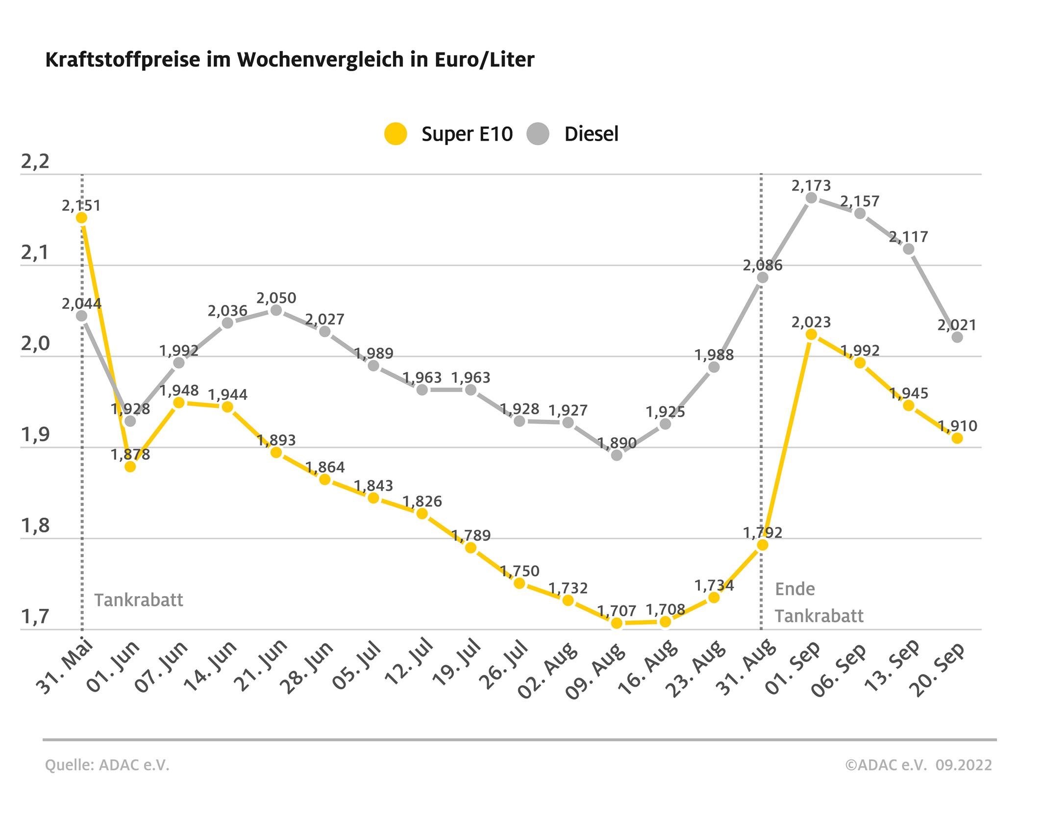 Kraftstoffpreise im Wochenvergleich Bild: ADAC Fotograf: © ADAC