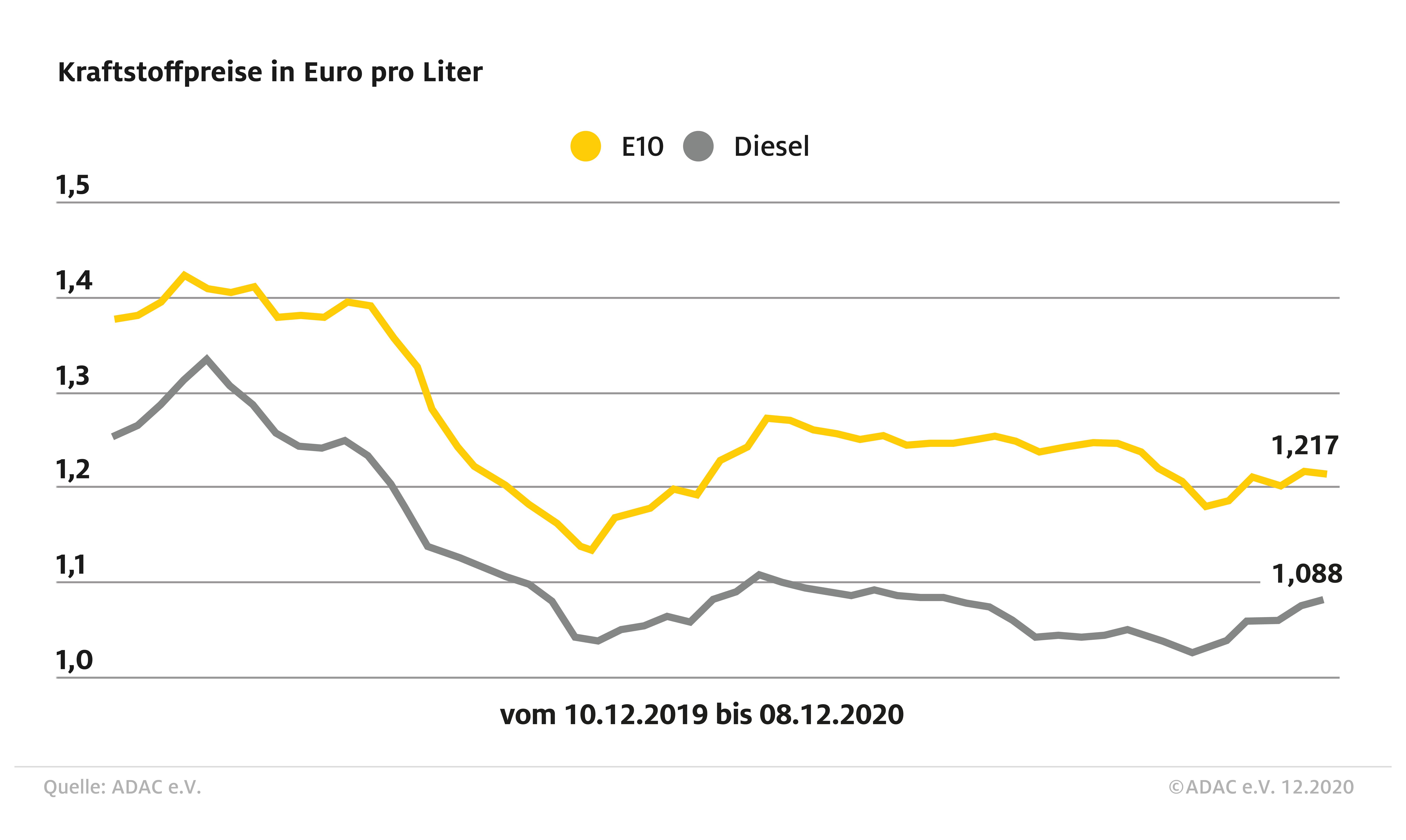 Kraftstoffpreise im Wochenvergleich Bild: "obs/ADAC-Grafik"