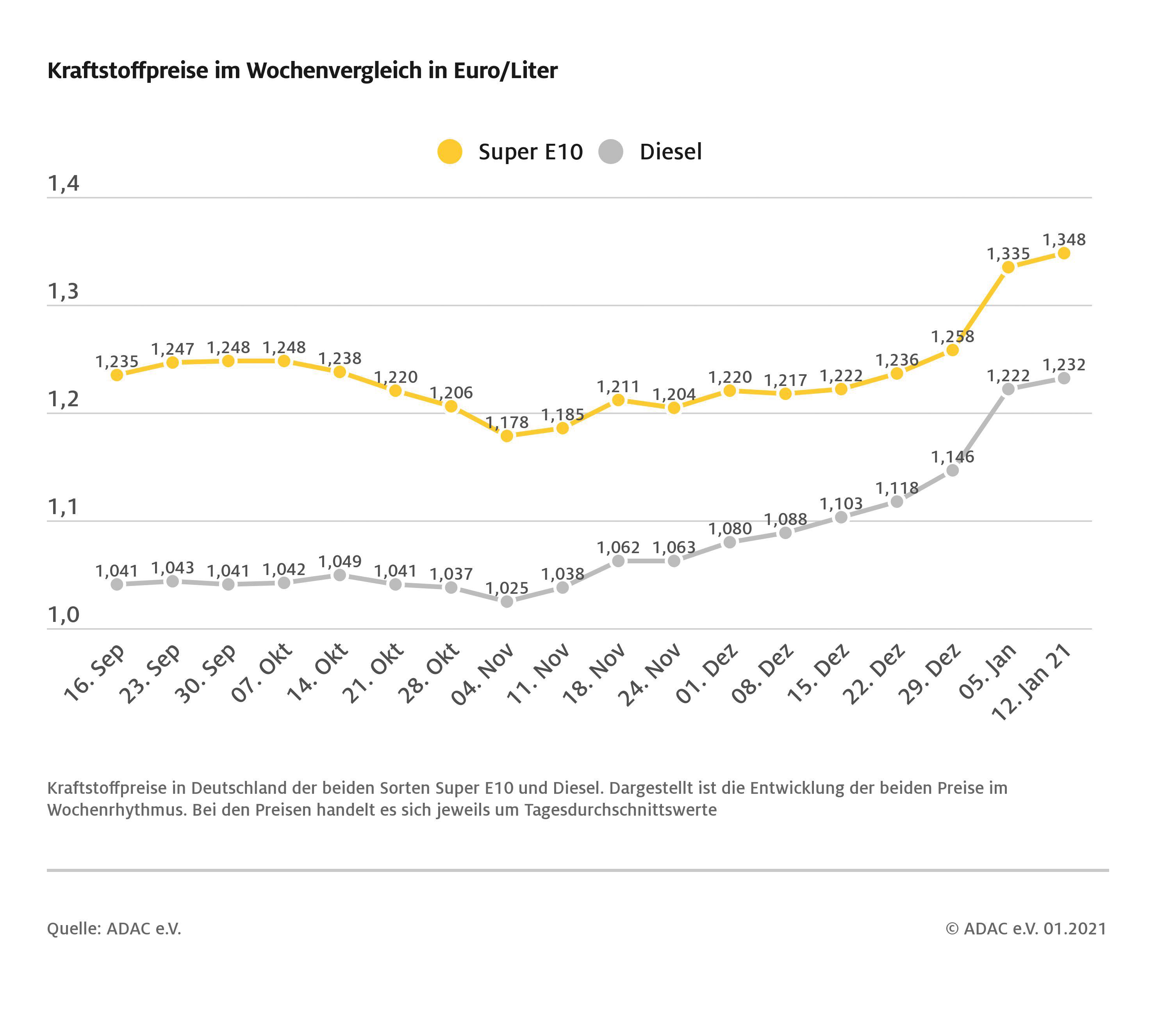 Benzinpreis klettert um 1,3 Cent, Diesel um einen Cent