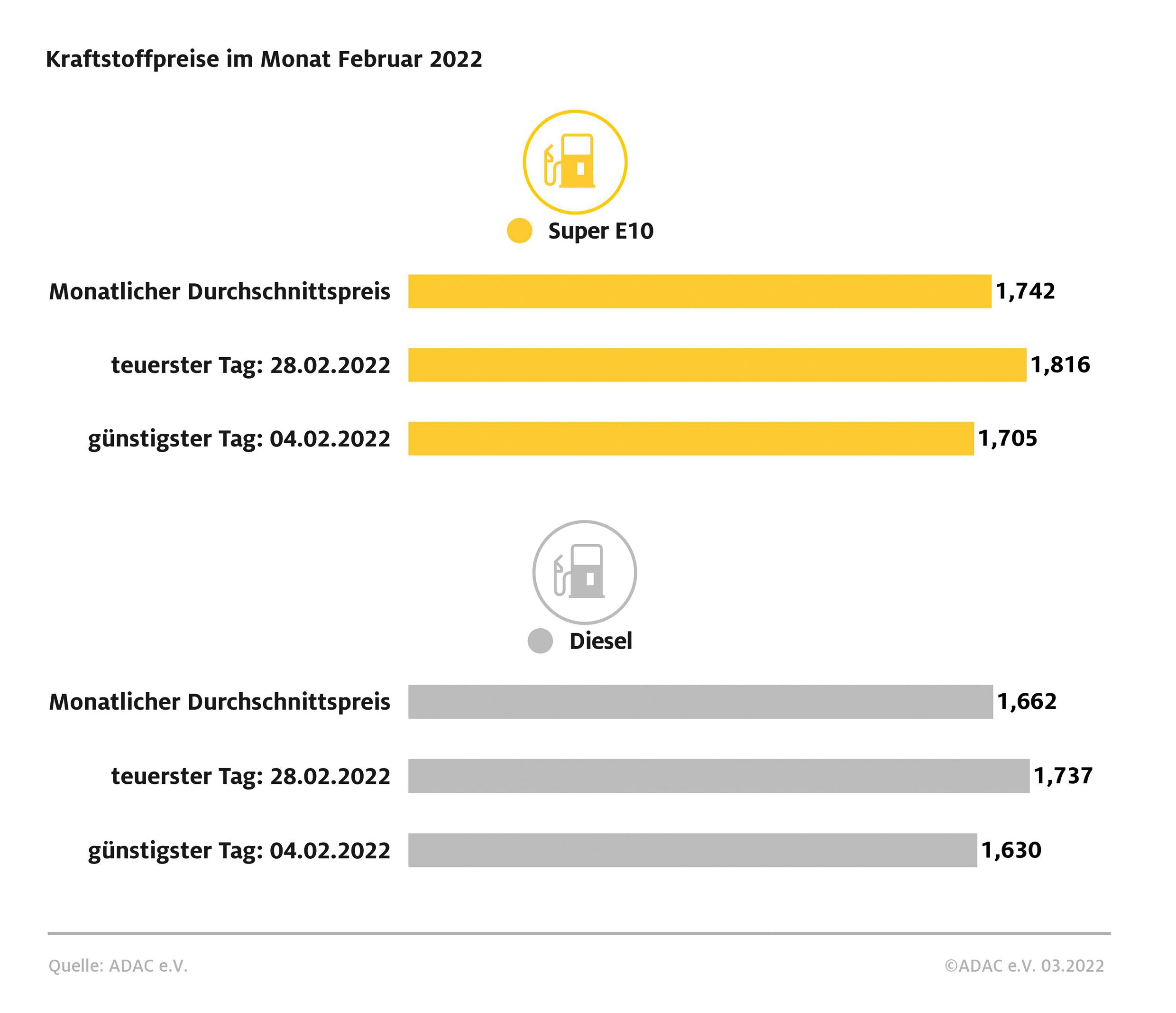 Kraftstoffpreise im Februar 2022 Bild: ADAC Fotograf: © ADAC