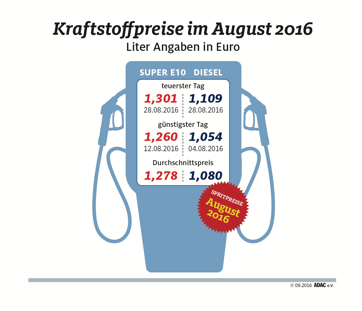 Kraftstoffpreise im August 2016 / Bild: "obs/ADAC"
