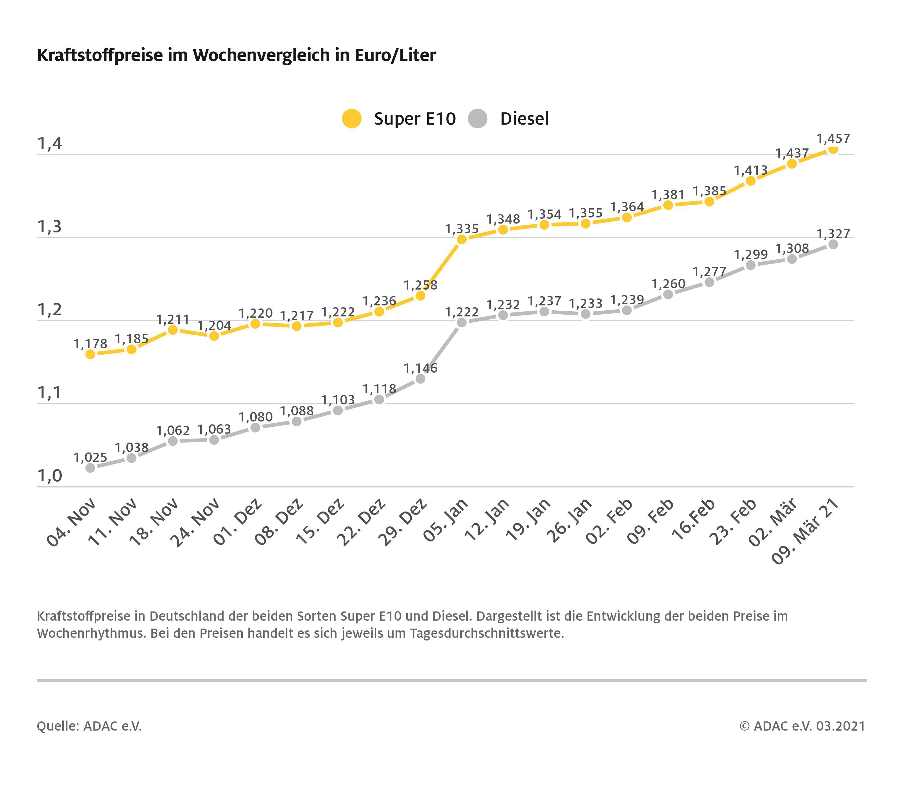 Kraftstoffpreise im Wochenvergleich Bild: ADAC Fotograf: © ADAC