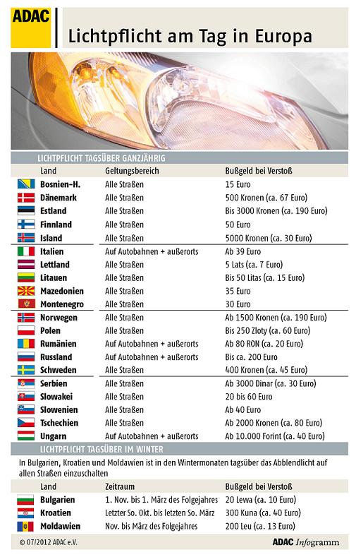 Licht- und Warnwestenpflicht in Europa