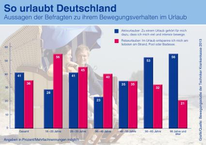 So urlaubt Deutschland: Junioren faulenzen, Senioren sind aktiv. Bild: "Foto: Techniker Krankenkasse".