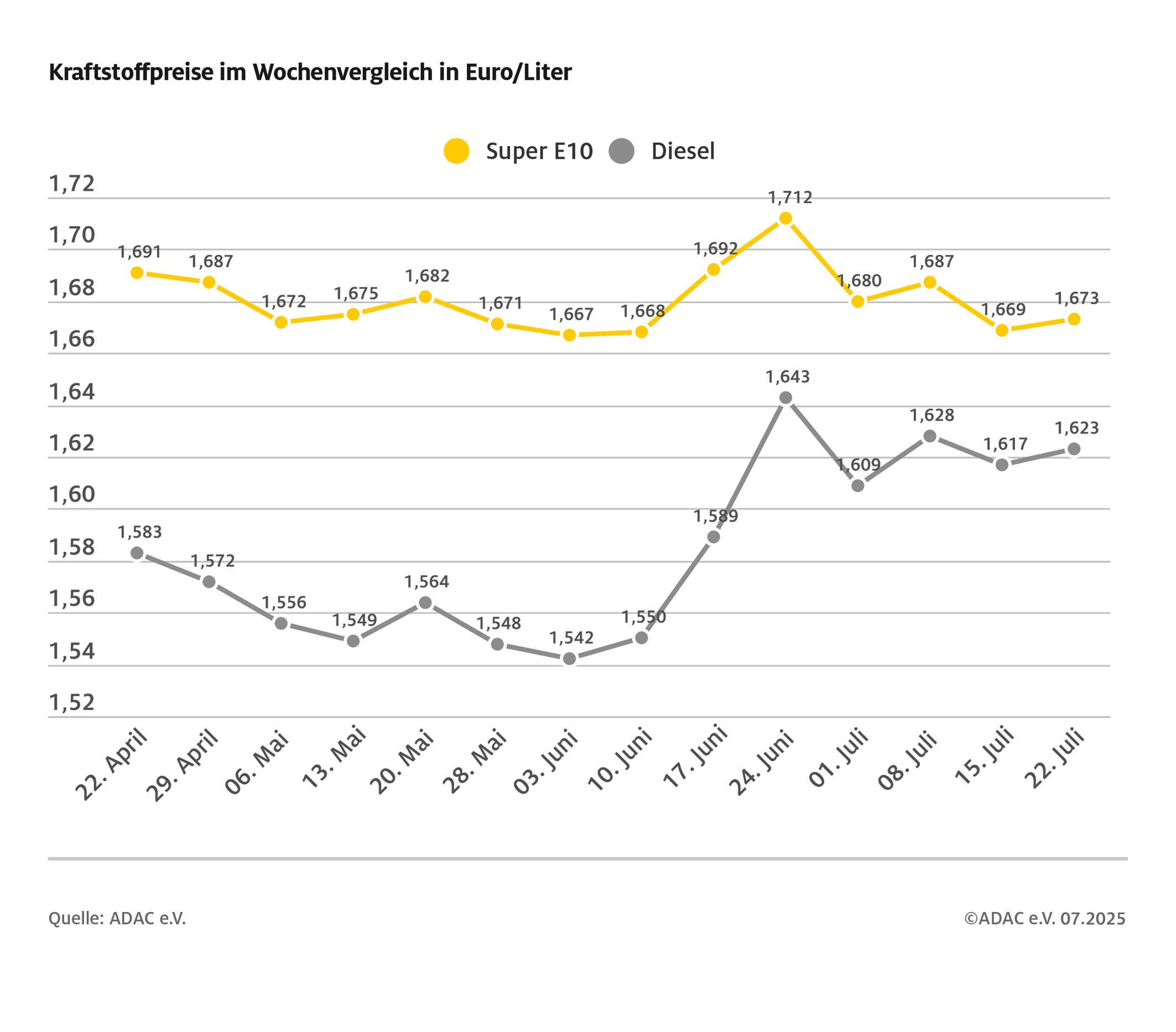 Zurück zu Tanken im Wochenvergleich etwas teurer ADAC: Vor allem Dieselpreis zu hoch