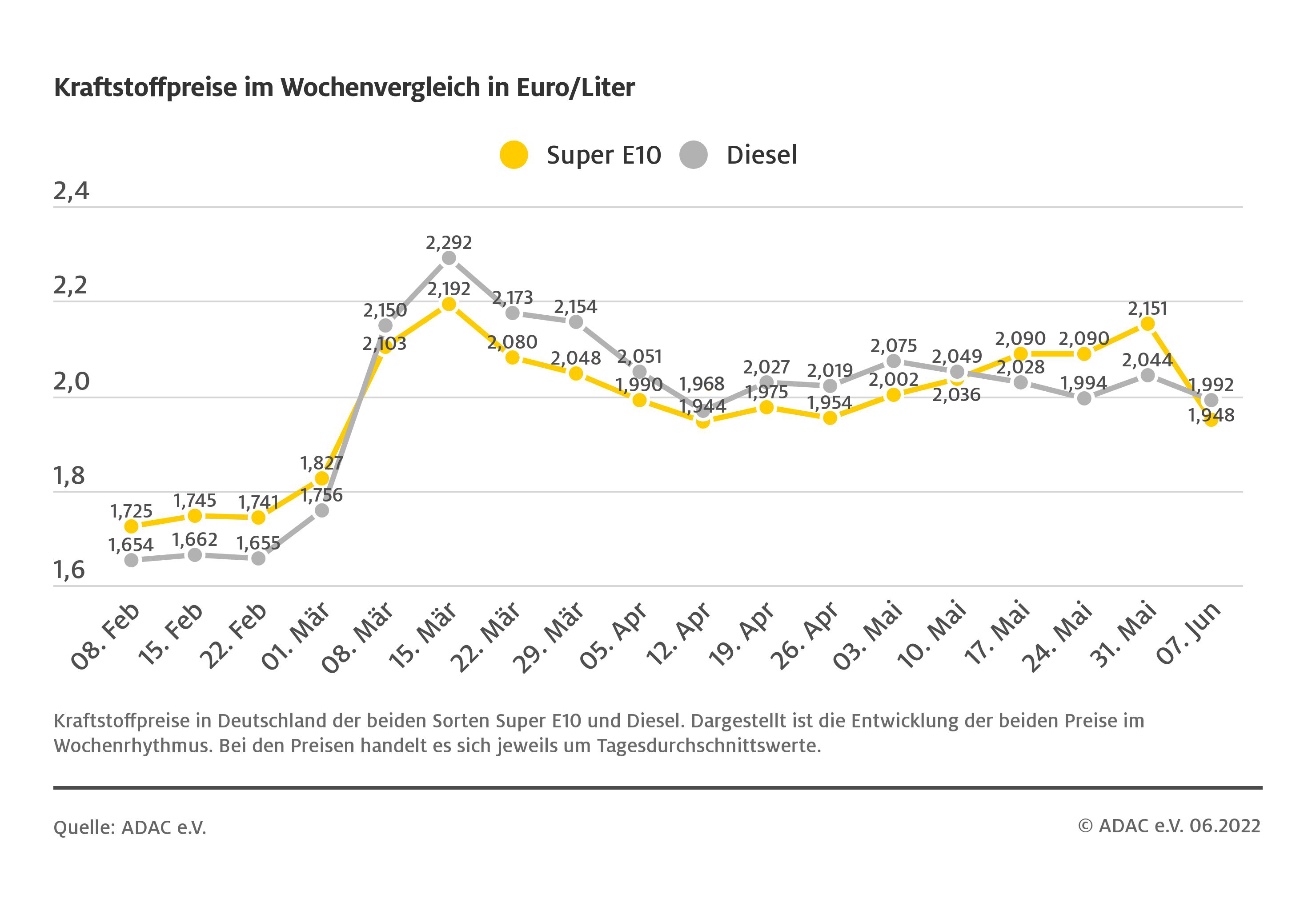 Kraftstoffpreise im Wochenvergleich Bild: ADAC Fotograf: ADAC