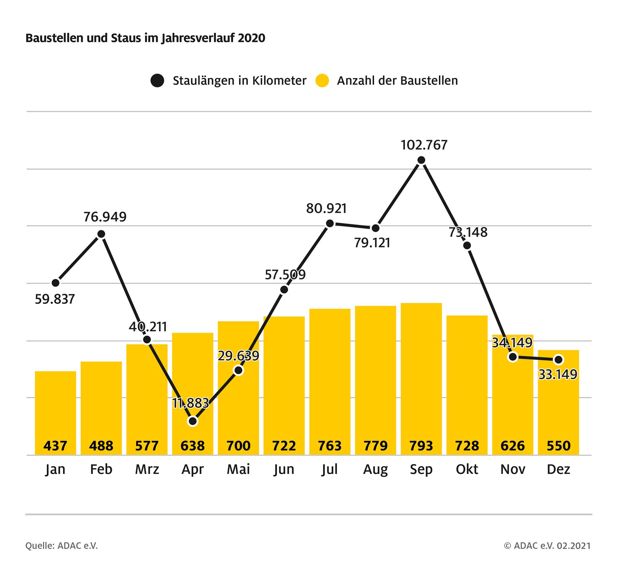 Staulängen gegenüber 2019 halbiert Bild: ADAC Fotograf: ADAC-Grafik