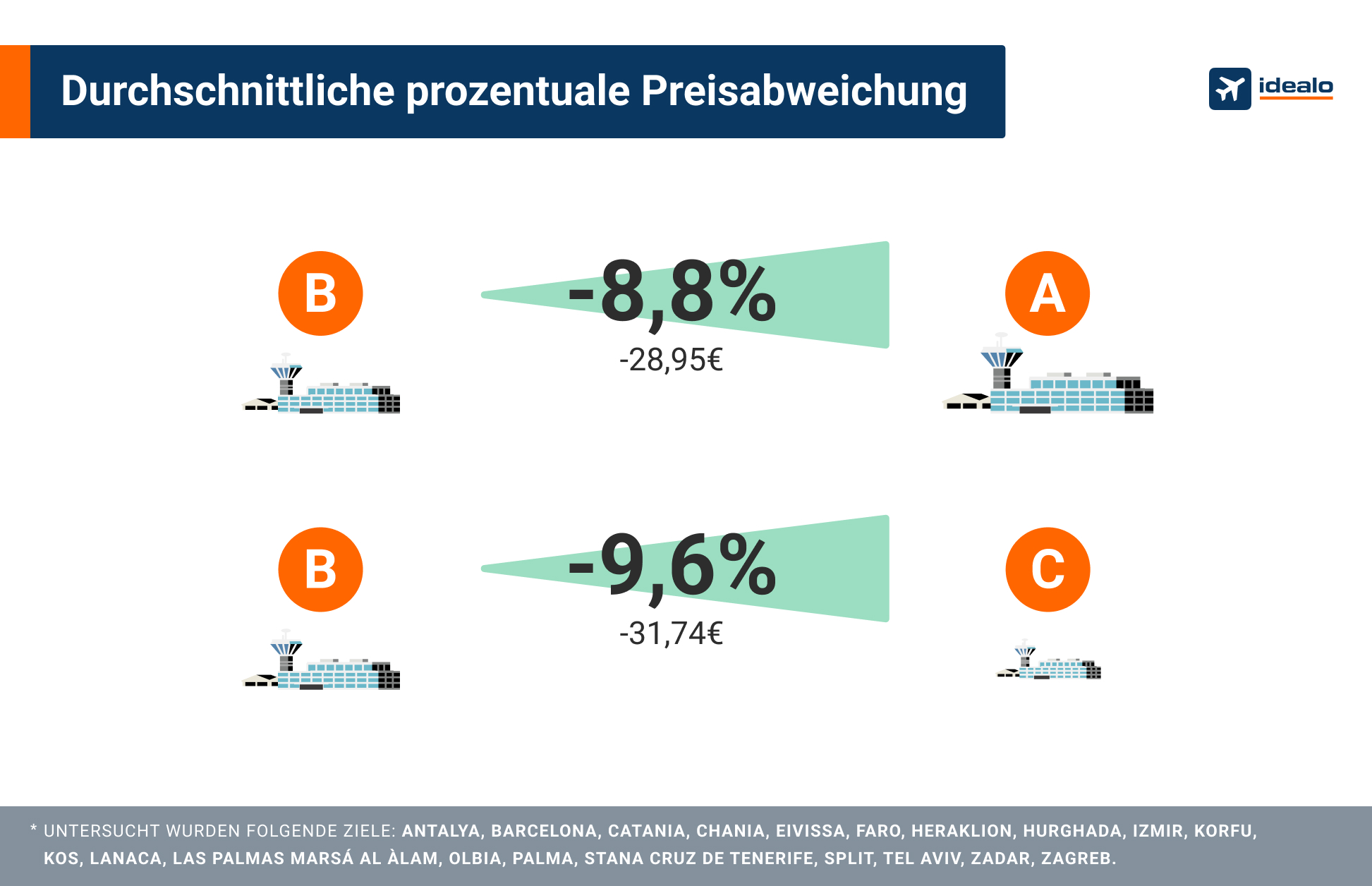 Ersparnis zwischen B und A sowie B und C Flughäfen