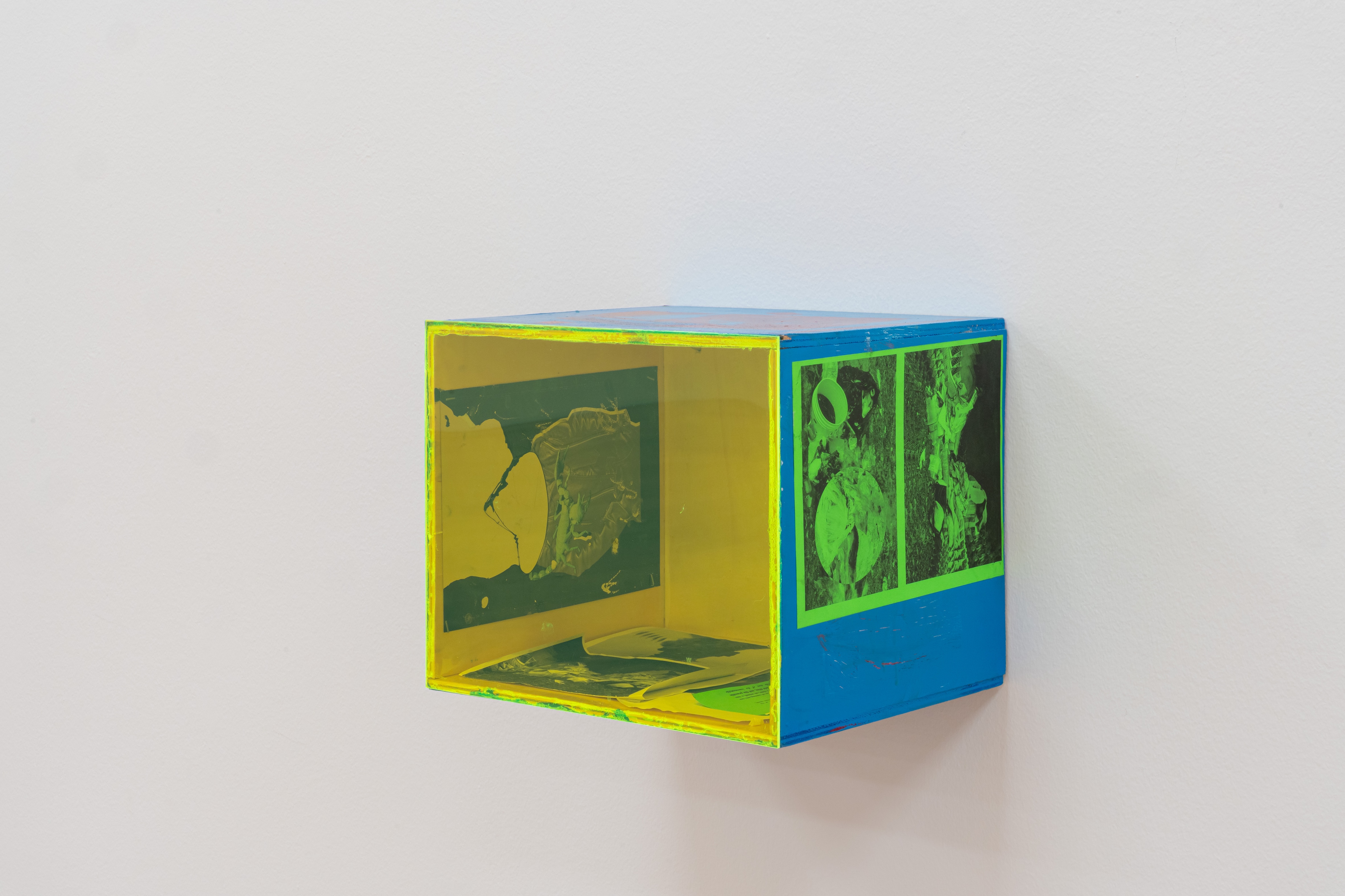 Henrik Olesen / Box, 2018 / Siebdruck auf Holz, Acryl, Lack, Druck auf Papier, Plexiglas / 32 x 39 x 32 cm Bild: Kunstmuseum Liechtenstein Fotograf: Maier Sandra