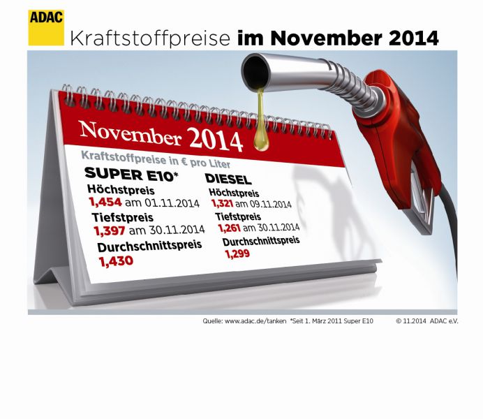 November 2014 günstigster Tankmonat seit vier Jahren