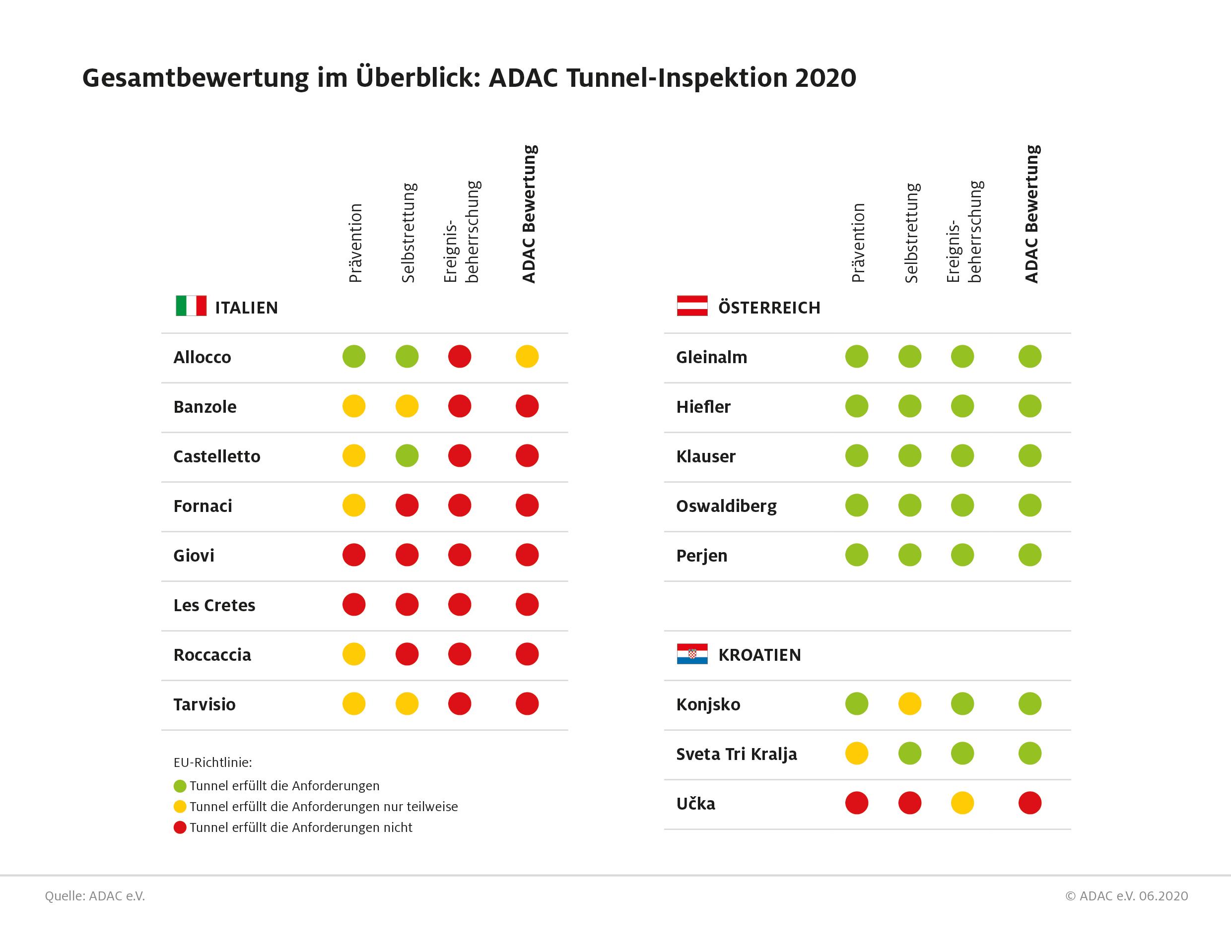 ADAC Tunnel-Inspektion 2020: Die Ergebnisse im Überblick. Bild: "obs/ADAC"