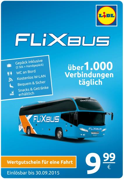 Mit Lidl und Flixbus für 9,99 Euro durch Deutschland reisen. / Bild: "obs/LIDL Dienstleistung GmbH & Co. KG"