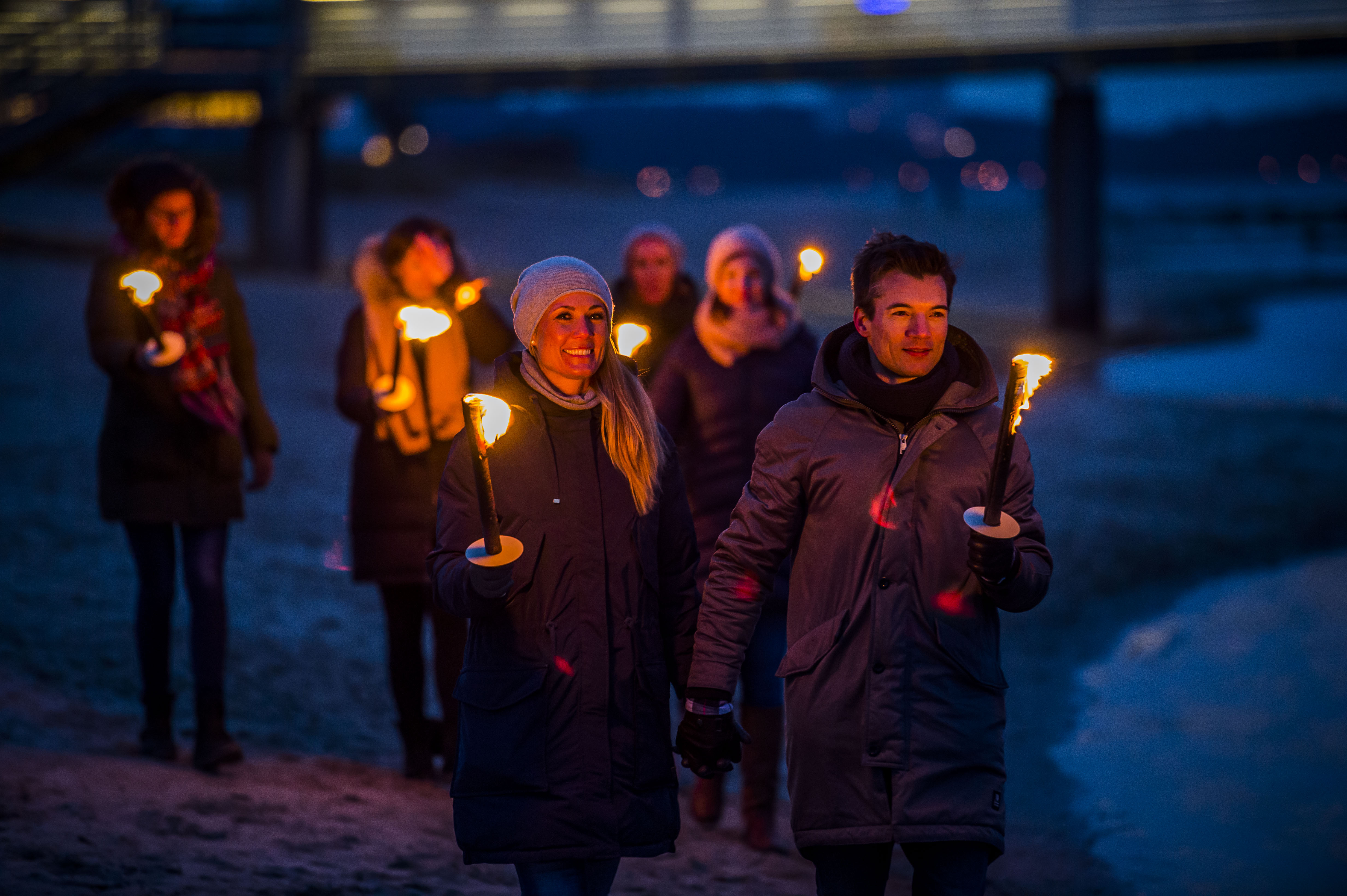 Fackelwanderung am Winterstrand in der Lübecker Bucht Bild: Olaf Malzahn Fotograf: Olaf Malzahn