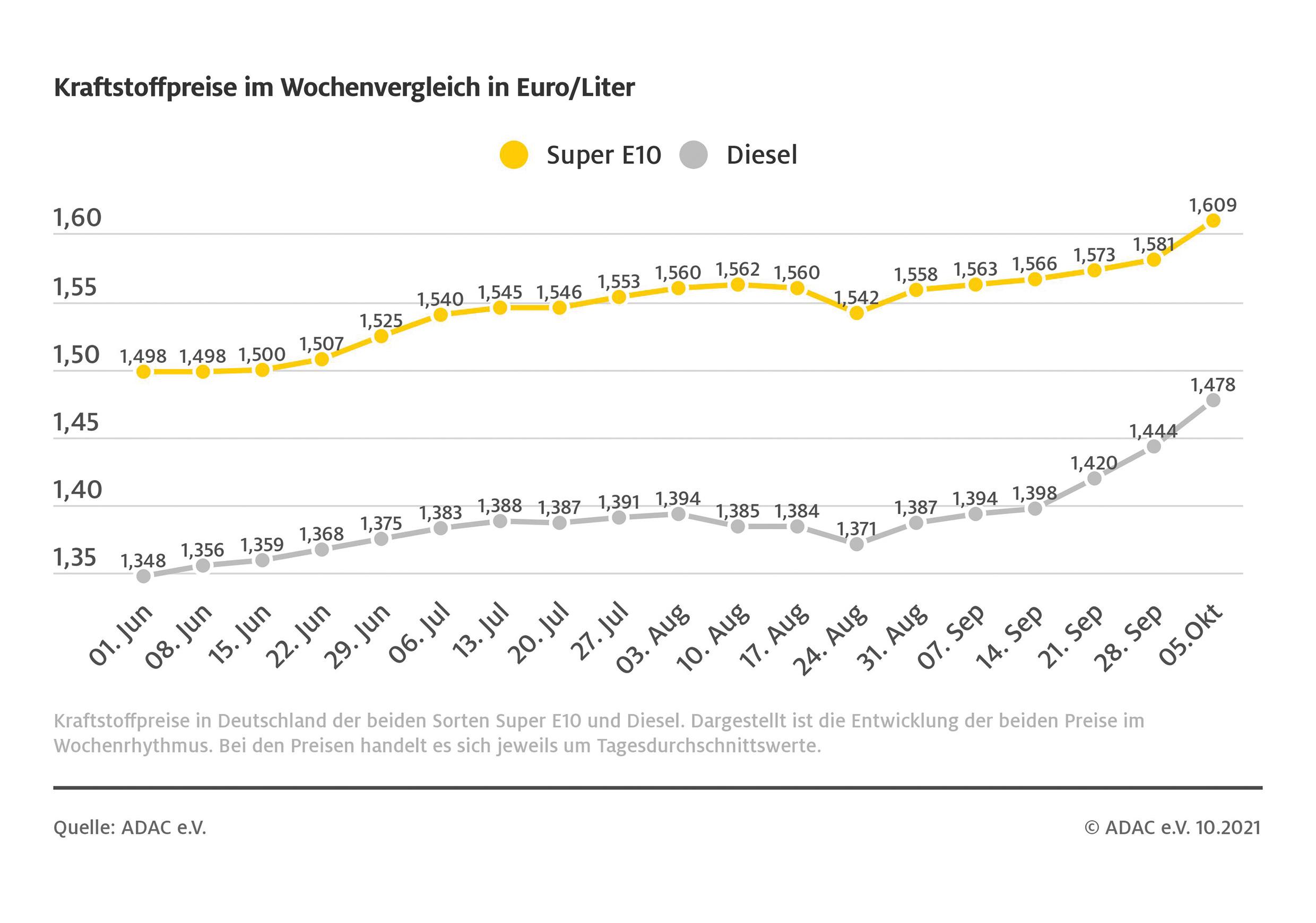 Kraftstoffpreise im Wochenvergleich Bild: ADAC Fotograf: © ADAC