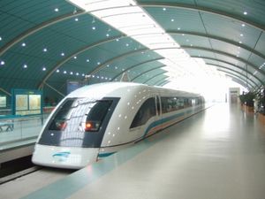 Jetzt mit 5G: Schanghais Transrapid im Bahnhof.