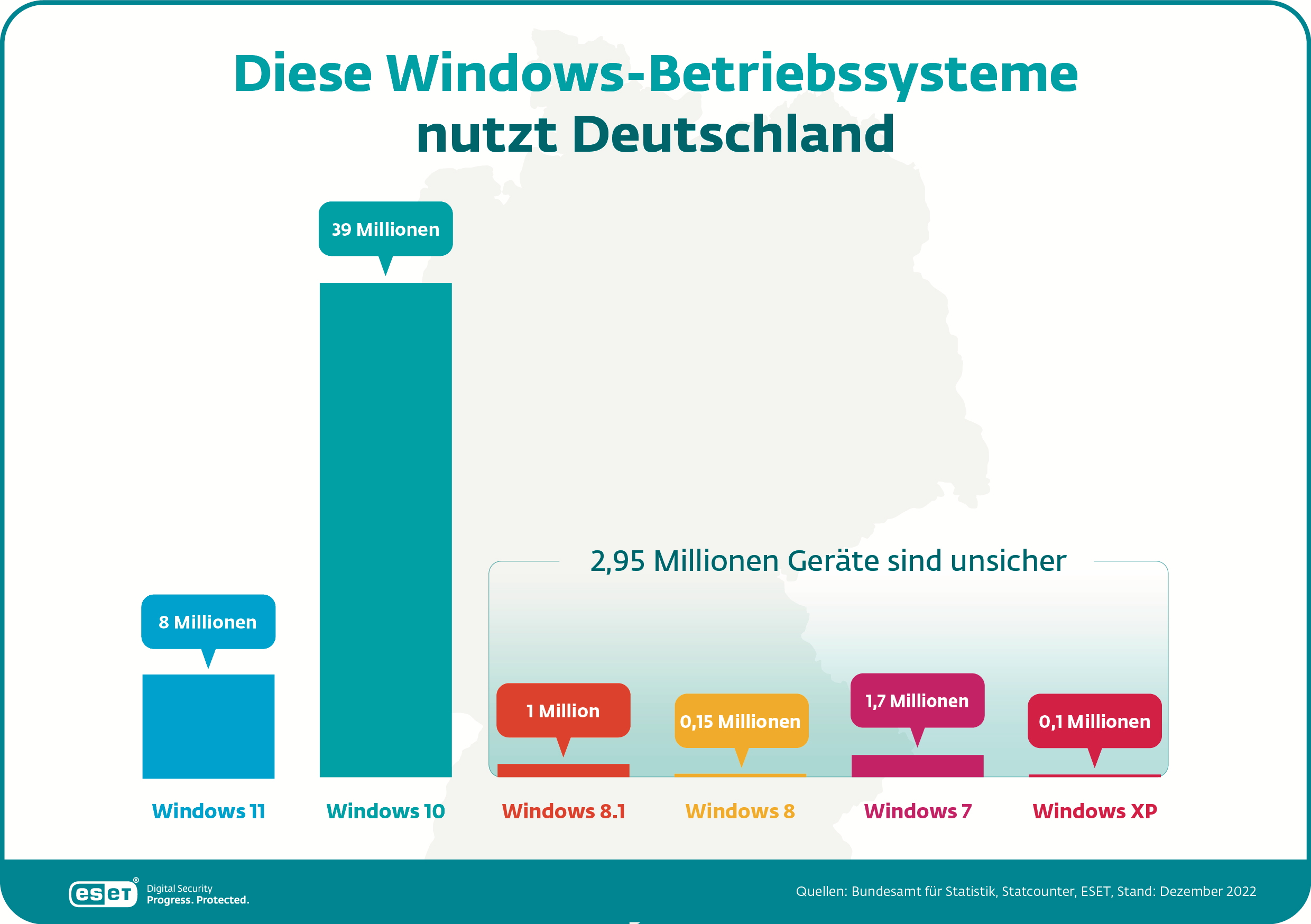 Der Großteil der Privatanwender in Deutschland setzt auf ein modernes Betriebssystem (47 Millionen).