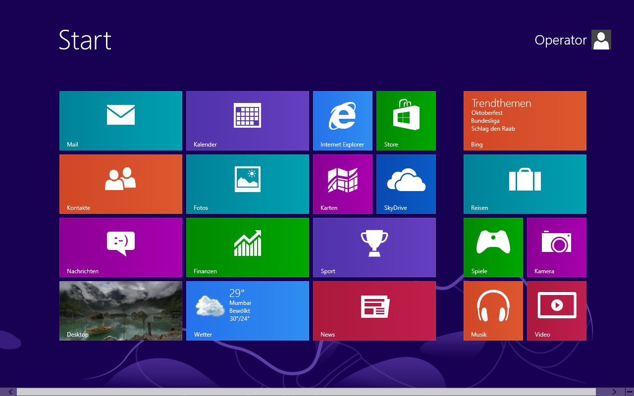 Screenshot vom Windows 8 Pro: Startscreen. Bild: Microsoft