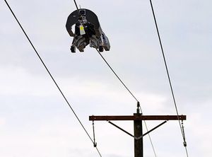 Roboter: Befestigt Glasfaserkabel an Stromleitung.
