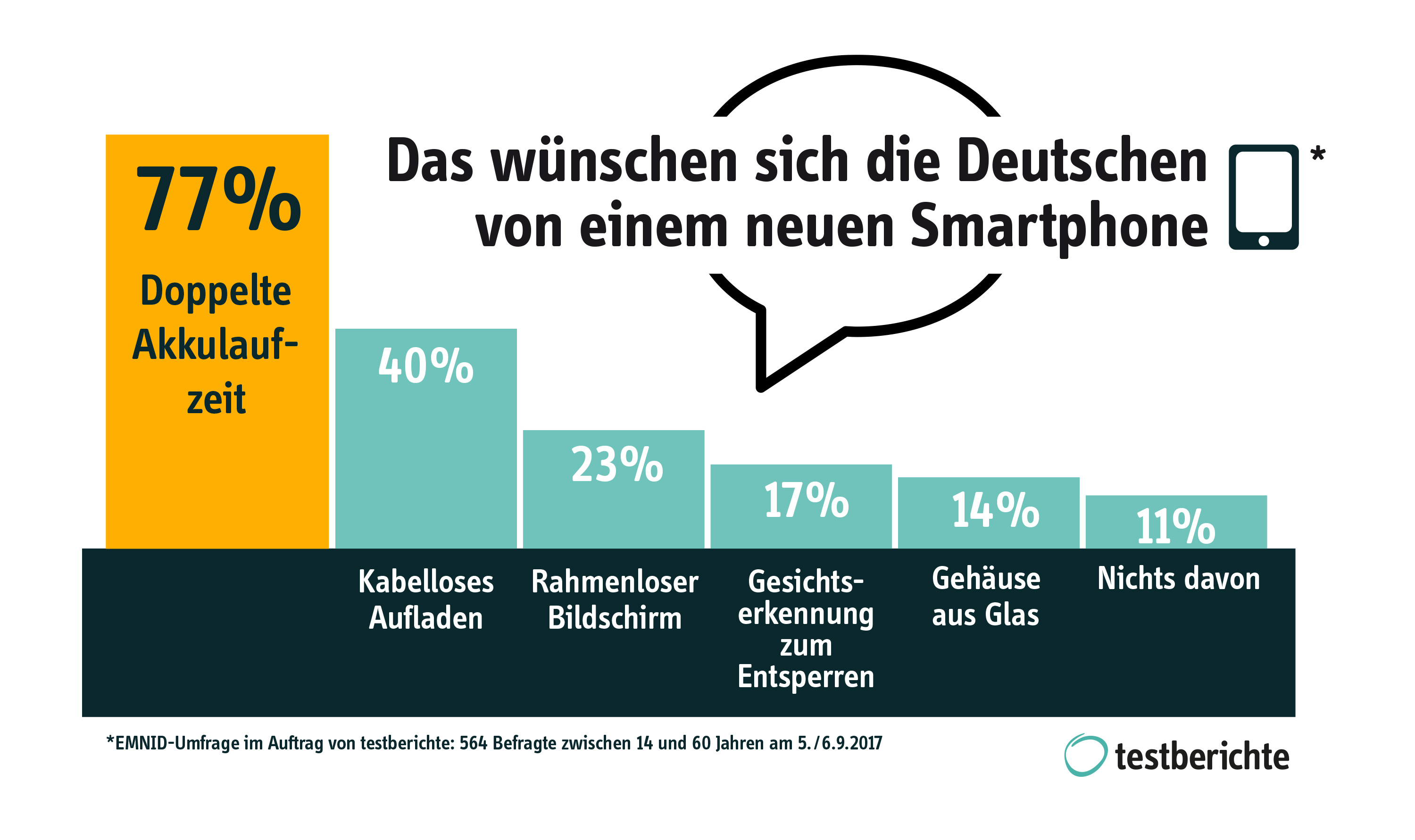 Das wünschen sich die Deutschen von einem neuen Smartphone. Bild: "obs/testberichte"