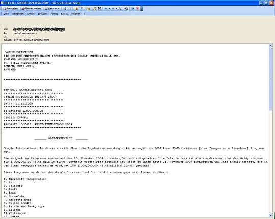 Abzocke 2.0: Google verlost angeblich 1 Million Euro