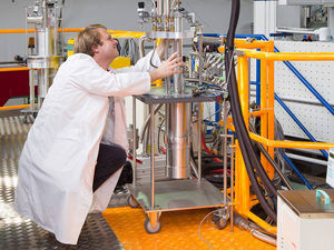 Forscher bei der Arbeit am TOFTOF-Flugzeitspektrometer.