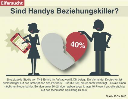 Handy als Beziehungskiller: Ein Viertel der Deutschen ist eifersüchtiger auf das Smartphone des Partners. Bild: "obs/E.ON Energie Deutschland GmbH"