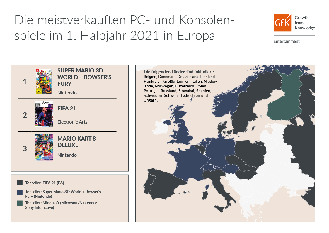 Top 3 Europas Games-Halbjahres-Charts 2021 Bild: GfK Entertainment GmbH Fotograf: GfK Entertainment GmbH