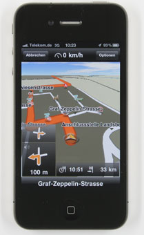 Die Navigationssoftware MN 7 von Navigon hat im ADAC-Test auf dem iPhone 4 die Bestnote "gut" (1,7) erhalten. Bild: ADAC