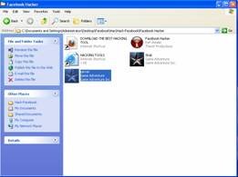 Configuration Panel des „Facebook Hacker“ Dateiordner des Angreifers inklusive server.exe