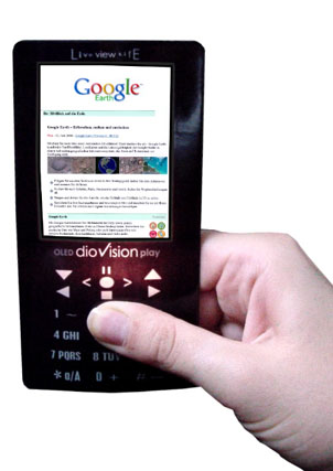 Superflach, handlich klein und noch besser als die modernste LCD-Qualität: Das Handy in seiner schönsten Form mit Doppel-OLED. Bilder können im Hoch- und Querformat durch dioVision® räumlich dargestellt werden. Der Empfang von TV und Internet ist somit unproblematisch möglich. Das Handy ist Multi-Communicator mit integrierten Funktionen wie MPEG-Musik, TV, Internet, Foto/Video und Game-Handheld. Quelle: www.diovision.de