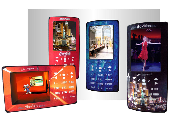 Die neue Handy-Generation verfügt über zwei Displays: 1 Hauptbildschirm (OLED) und 1 selbstleuchtende, variable und sensitive Bedienoberfläche (ebenfalls OLED-Technologie). Jederzeit auf Knopfdruck ist das Wunsch-Design des Handys veränderbar oder wird mit automatisch wechselnden Werbeaussagen als gesponsortes Kommunikations-Tool eingesetzt. Quelle: www.diovision.de
