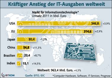 IT-Nachfrage steigt 2011 weltweit um 4,3 Prozent