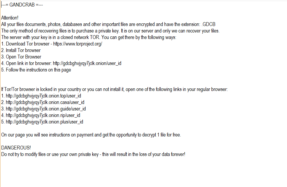 Screenshot GandCrab: Erpressersoftware verschlüsselt alle Daten.