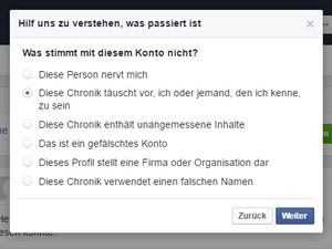 Meldesystem: soll User vor Fake-Accounts schützen. Bild: facebook.de
