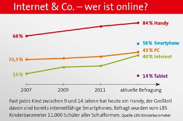 Sie sind hier: Startseite Nachrichten IT/Computer Mobile Kommunikation im Kinderzimmer auf dem Vormarsch Bild: obs/LBS West