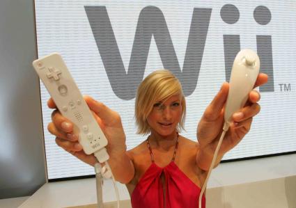 Model Anna Groth präsentiert Wii. Quelle: Nintendo of Europe GmbH