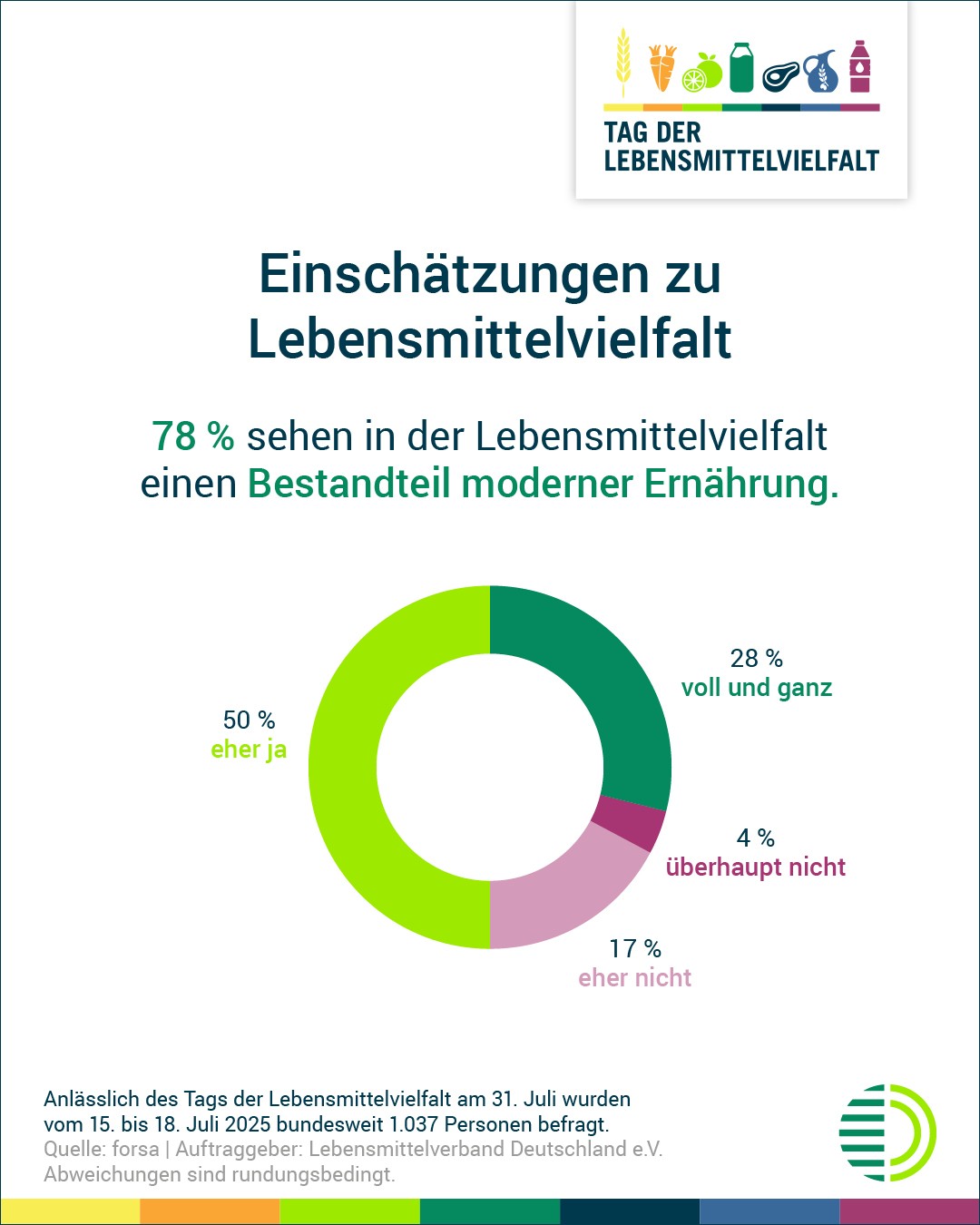 Abbildung 3: Tag der Lebensmittelvielfalt 2025 - Einschätzung Lebensmittelvielfalt in Bezug auf moderne Ernährung / Weiterer Text über ots und www.presseportal.de/nr/12796 / Die Verwendung dieses Bildes für redaktionelle Zwecke ist unter Beachtung aller mitgeteilten Nutzungsbedingungen zulässig und dann auch honorarfrei. Veröffentlichung ausschließlich mit Bildrechte-Hinweis. Bildrechte: Lebensmittelverband Deutschland e. V. Fotograf: Lebensmittelverband Deutschland e. V.