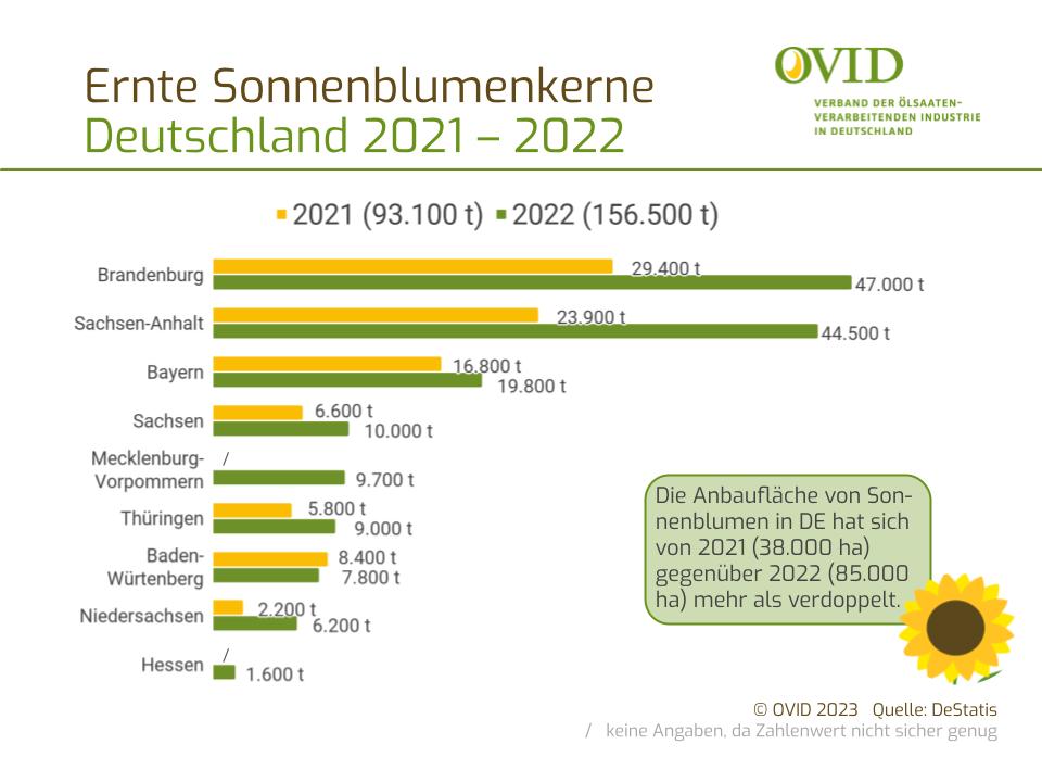 Ernte Sonnenblumenkerne nach Bundesländern in 2021 und 2022.