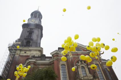 5 vor 12 für die Banane. Hamburger Michel als Symbol des Umdenkens. Bild: "obs/TransFair e.V./TransFair e.V./Selina Pfrüner"
