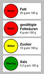 Ampel (Lebensmittelkennzeichnung). Bild: Grochim / de.wikipedia.org