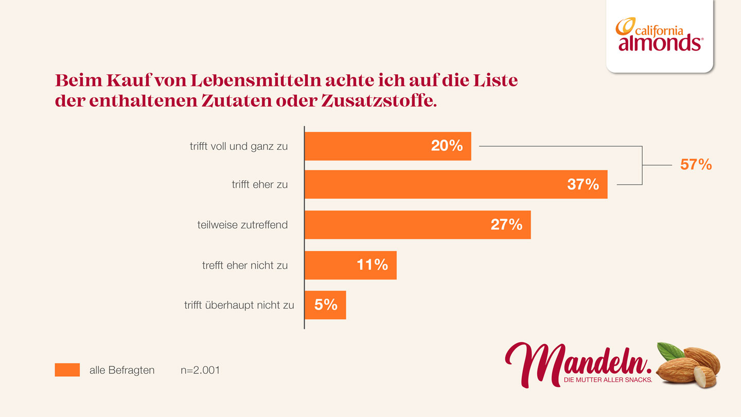 Gesundheitsbewusstsein im Fokus: 57% der Konsumenten legen großen Wert auf die Inhaltsstoffe beim Lebensmittelkauf.