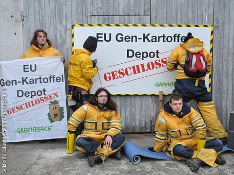 Greenpeace-Aktivisten schließen Gen-Kartoffel-Depot