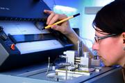 Eine Wissenschaftlerin riecht an den einzelnen Aromastoffen des Mineralwassers und notiert die Geruchscharaktere, etwa fettig, fruchtig oder muffig. Bild: © Fraunhofer IVV