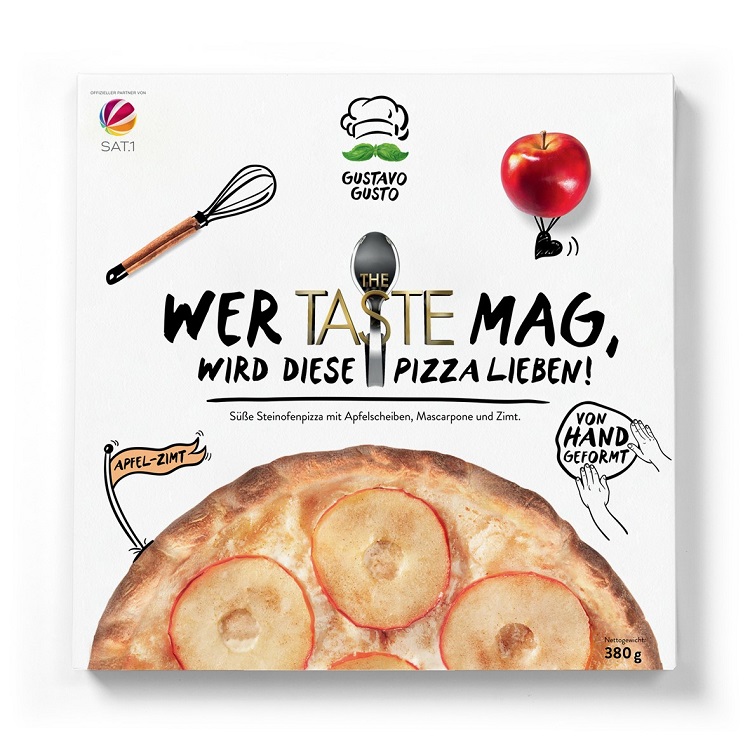 Neue süße vegetarische Tiefkühlpizza belegt mit Apfelscheiben. Bild: "obs/Franco Fresco GmbH/Gustavo Gusto"