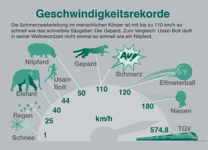 Die Schmerzweiterleitung im menschlichen Körper ist mit bis zu 110 km/h so schnell wie das schnellste Säugetier: Der Gepard. Bild: "obs/Bayer HealthCare Deutschland"