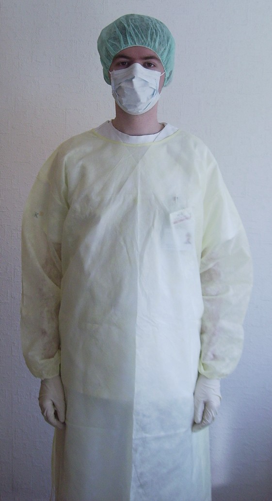 Typische Schutzkleidung in Krankenhäusern beim Umgang mit MRSA-Patienten
