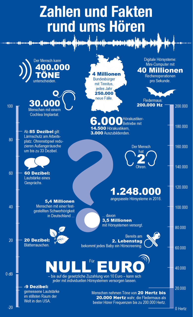 Zahlen und Fakten rund ums Hören. Bild: "obs/Bundesinnung der Hörgeräteakustiker KdöR/Copyright biha 2017"