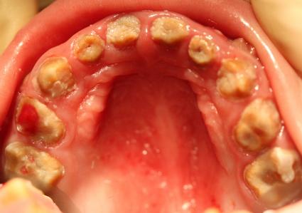 Bei vielen Kindern sind die Milchzähne so stark geschädigt, dass Kiefer und Gebiss nur mithilfe einer Operation in Vollnarkose saniert werden können. Bild: "obs/Anästhesie-Netz-Hamburg (ANH) e. V."