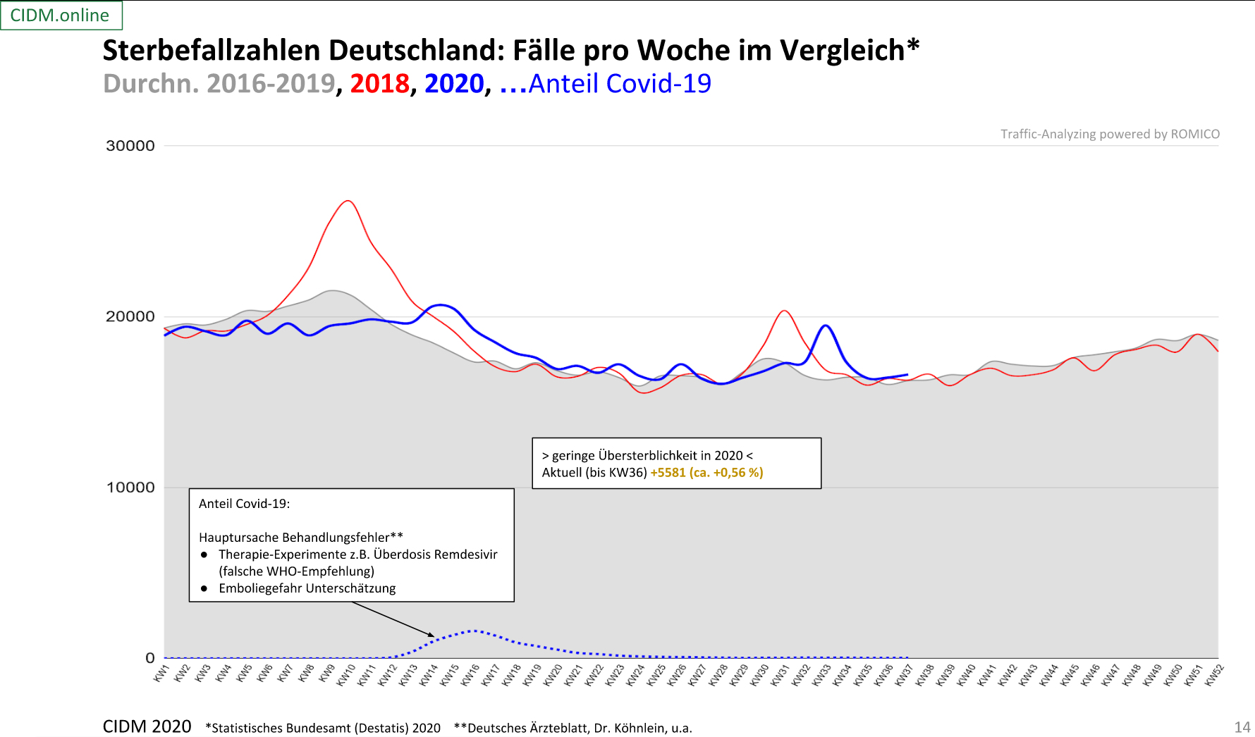 Die Sterbefallzahlen In Deutschland im Vergleich von 2016 bis 2020 zeigen das COVID-19 eine unbedeutende Randerscheinung ist, Stand September 2020